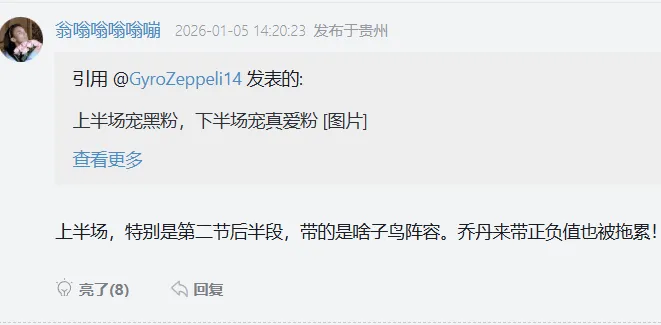 -翁嗡嗡嗡嗡嘣:上半場,特別是第二節(jié)后半段,帶的是啥子鳥陣容。喬丹來帶正負(fù)值也被拖累!