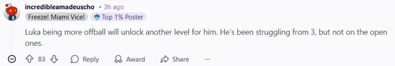-(83贊)盧卡更多打無球會為他開啟另一個層次。他在三分線外有些掙扎,但空位投籃沒問題。